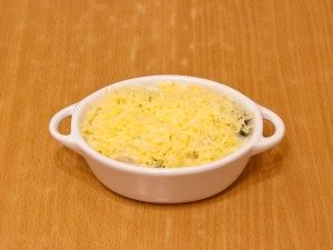- Сложете филето в порционирани керамични съдове за печене и зеле.