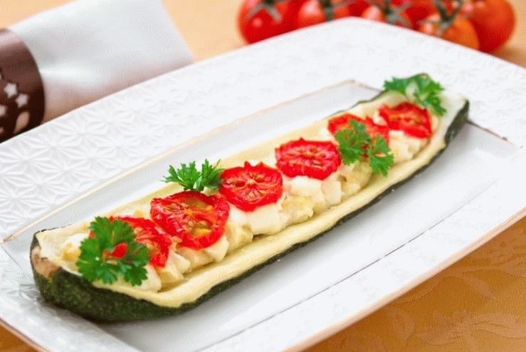 - Пълнени половинки тиквички с чай лъжици фета мека.