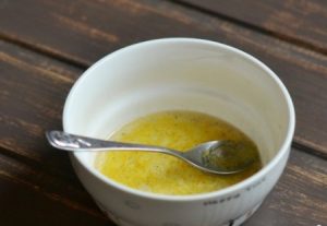 - Смесете винен оцет или лимонов сок, зехтин, черен пипер и солта. Зареждането с гориво може да се извърши предварително.