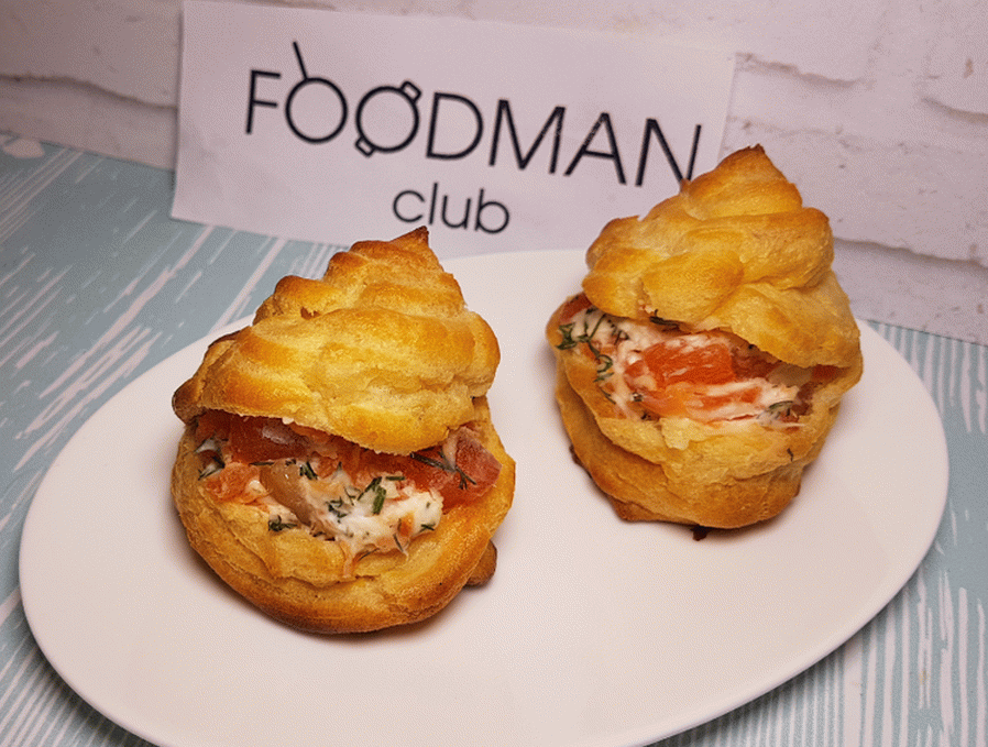 - Започнете profiteroles с рибен пълнеж. Готово.