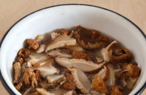 - Сварете вода за супа и сложете грах от черен пипер в нея, дафинови листа и гъби, измити с просо с гореща вода. Гответе ги ще е около четвърт час.