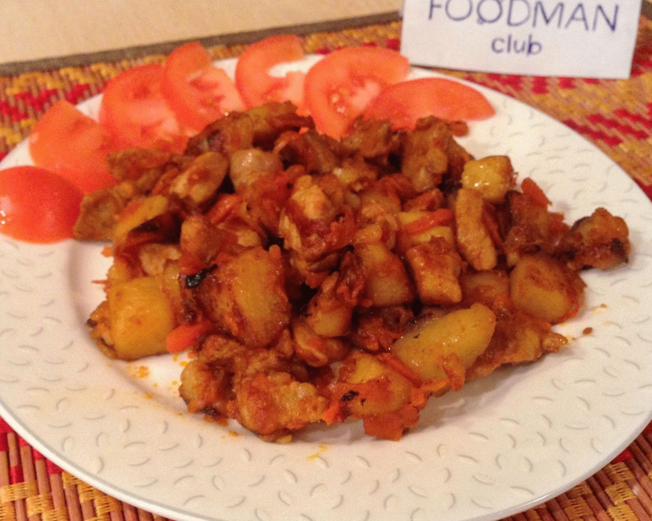 - В същия тиган запържете картофите, можете да добавите още малко масло.