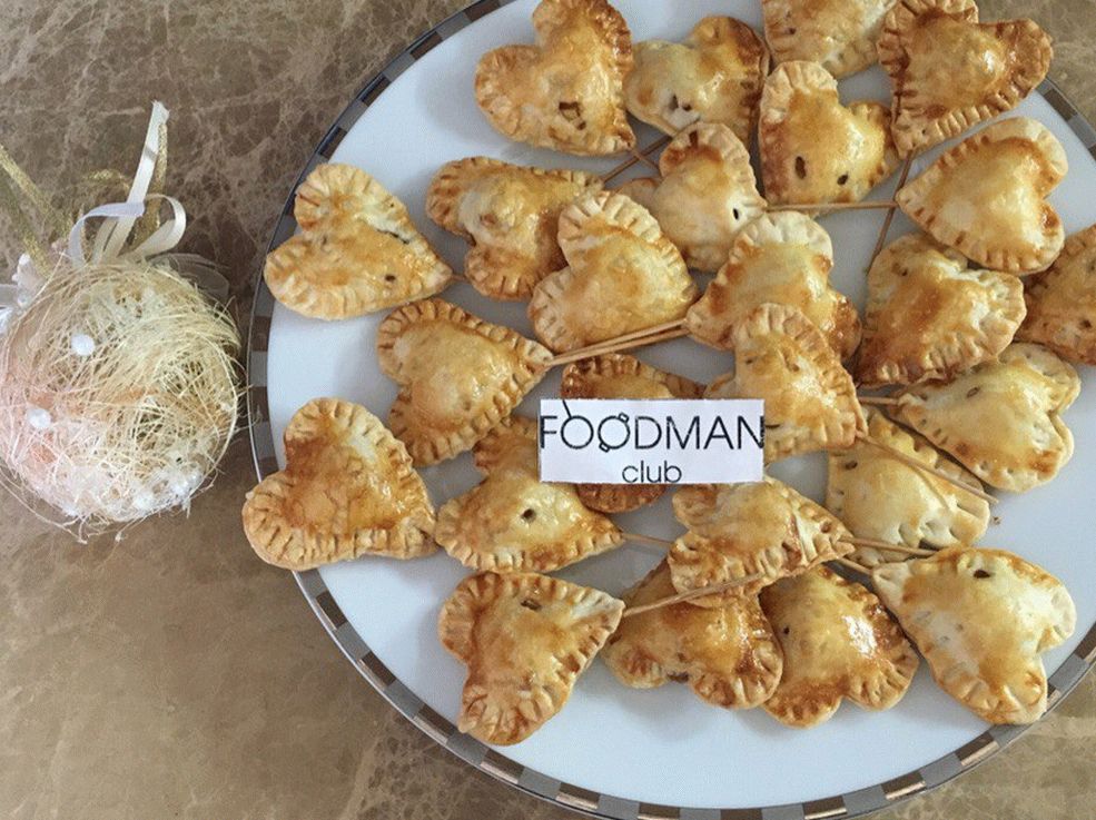 - Разстелете пълнежа, отгоре намажете с втората половина сърца, прекарайте краищата с вилица.