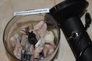 - Взимаме една риба скумрия и избираме филето, като премахваме всички перки и кости. Смелете филето (не към кайма) с пасатор заедно с лука. Вполучената смес на вкус добавете сол и смлян черен пипер.