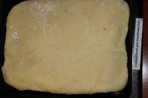 - Загрейте фурната на температура 200 градуса и сложете вътре го печене лист с кекс за 30 минути при температура 180 градуса. Когато сме готови, изваждаме лист за печене с пай, оставяме леко да изстине. Нарежете на малки парченца и сервирайте с чай или мляко.