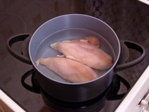 - Измийте пилешкото филе, добавете студена вода, поставете на огън. След като заври, отстранете пяната с нарязана лъжица, намалете котлона до средна, гответе още 20 минути.