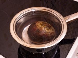- Картофите ми, цвеклото, сварете в корите отделно в саксии. След като изстинем, изчистваме, смиламе през ренде на отделни плочи.