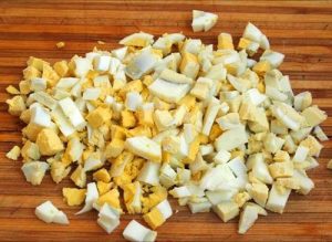 Смесете тези съставки с корейските моркови, подправете майонеза.