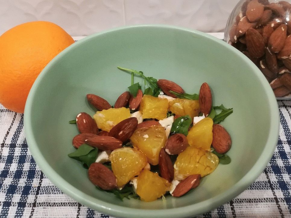 Гответе вкусна салата с овче сирене, портокал и рукола и изненадайте своите приятели и гости! Салатата е невероятна вкус, с ярки цитрусови нотки. Да се направи такава салата е много просто ви трябват само 15 минути свободно време. Можете да сервирате такава салата за закуска, романтична вечеря или празнична трапеза.