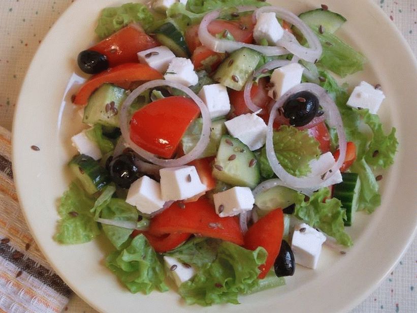 Препоръчвам да приготвите у дома вкусна салата със сирене Адиге и ленени семена. Тази здравословна салата, нещо подобно на гръцката, може да се направи на хора, които следват фигурата им.