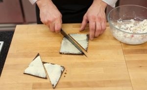 Ръжен хляб (можете да използвате всеки по ваш вкус или багет) нарязани на триъгълници и намажете с омекотено масло.