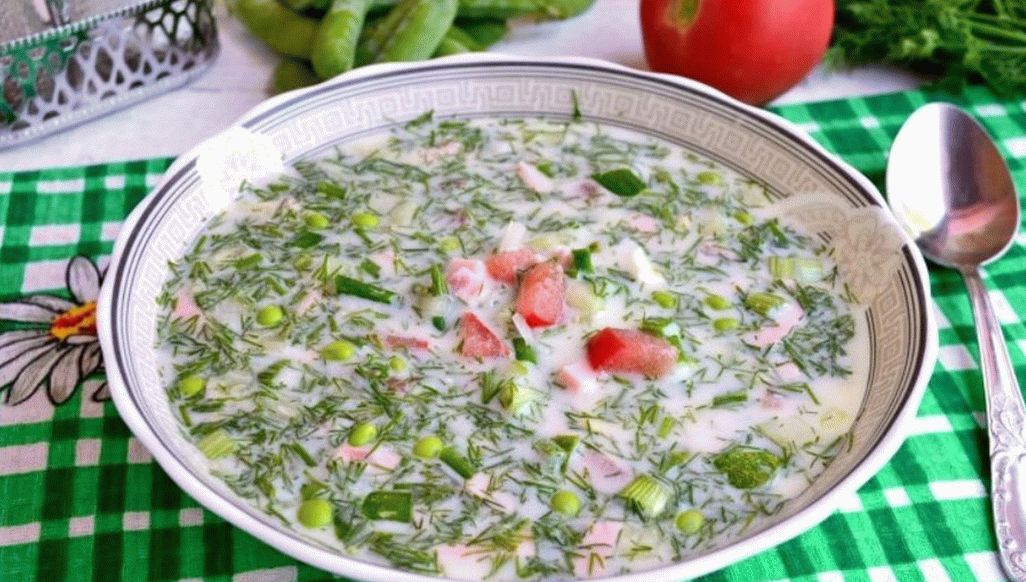 Светло лятно okroshka с нестандартен набор от продукти за любители на нови усещания. Готвим у дома okroshka с узрял домати и сладък грах. Вкусът ще се окаже отлично!