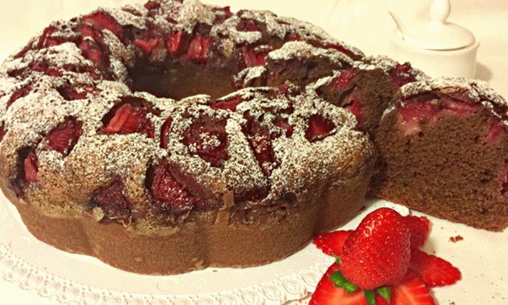 Тази домашна шарлотка се оказва много вкусна, тъй като варени с ягоди и шоколад. При печене тестото се издига и ягодите потъват във вътрешността на пая.