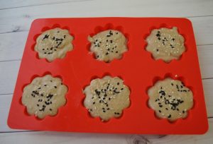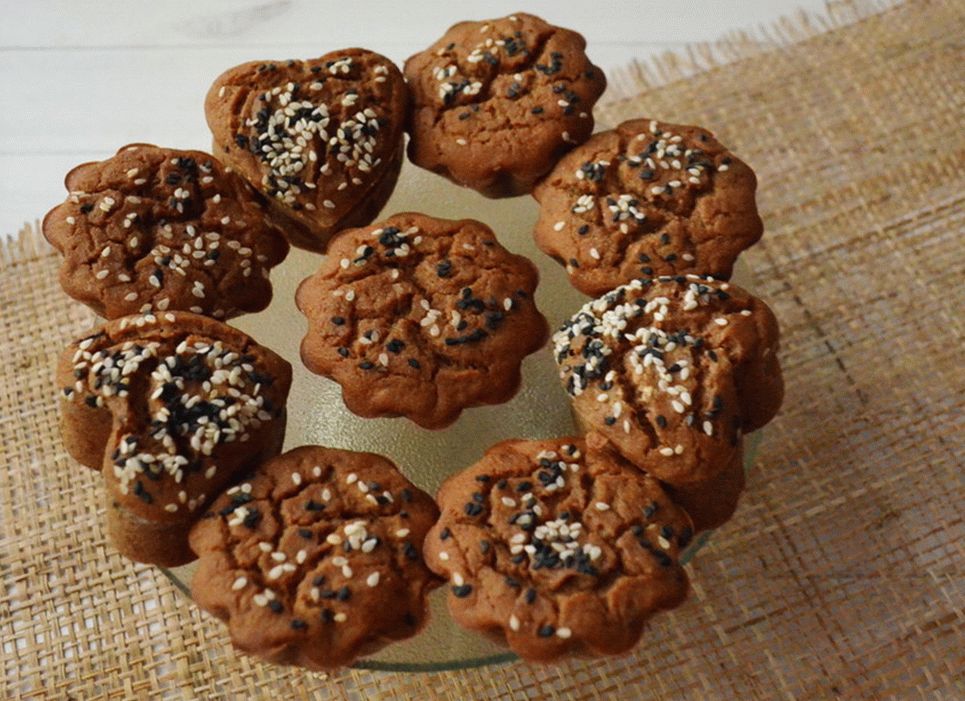 - Разпределяме тестото във форми, поръсваме със сусамови семки и печем на 180 градуса около половин час, може би четиридесет минути.