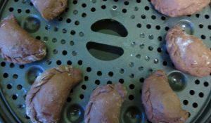 - Докато приготвяте кнедли, направете соса: разтопете останалата половина от шоколадовия бар с две супени лъжици плодове.