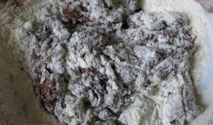 - Налейте 1 чаша гореща вода. Разбъркайте добре и дайте охладете тестото.