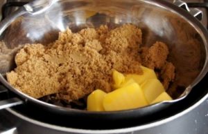 - В тенджера разтопете шоколада с кафява захар и масло.