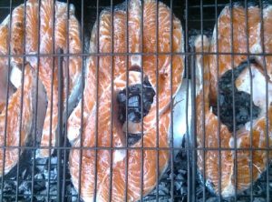 - За барбекю е по-добре да вземете предната част на рибата. Нарязваме на пържоли (дължината трябва да бъде приблизително три сантиметра).