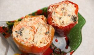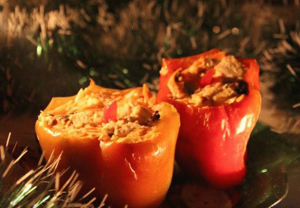 - Сложете пипер върху чиния, лъжица пълнене, внимателно Трамбоване.