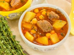 Зимно затопляне и вкусна сърдечна супа а. Тази супа е добра с агнешко, въпреки че според тази рецепта, можете да готвите супа у дома и с говеждо месо. При готвене трябва да се отделя време накисване на нахут (от четири до пет часа).