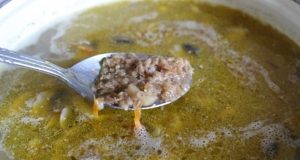 Готвене на домашна елда и целодневна супа гъби от шампион. Малко необичайни, но много вкусни.