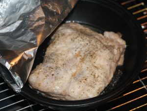 Покрийте подготвените ребра с фолио и изпратете до предварително загрята фурна на 140 градуса за 1 час.