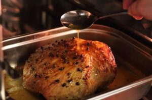 Сочна и вкусно ароматна свинска шунка ще се окаже, ако се пълни с карамфил и се готви у дома фурна със сос от портокалов сок, коняк и мед. Месото е дълго изпечен на ниска температура и става много нежен и вкусно.