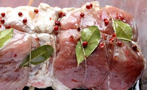 Не е необходимо да се подготвят сложни пълнежи за руло, ароматни и ще се окаже вкусно, ако просто пълните месото с чесън, навийте и гответе у дома във фурната с дафинов лист и семена от червен пипер.