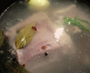 - Налейте хладна вода, докарайте ги до кипене, намалете котлона малко, гответе костите за около 20 минути. сложете лука в тигана до костите, добавете морковите, естрагон, дафинов лист, карамфил и черен пипер. Донесете течност до кипене и сложете в него парче телешко месо.