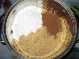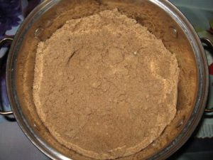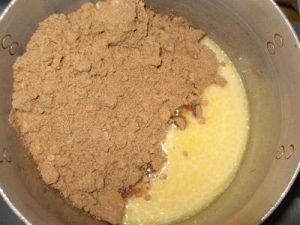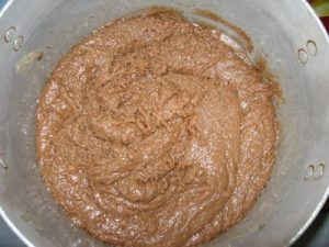 - Добавете какао, захар, ванилин към черния дроб и добре разбъркайте добре.