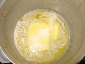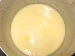 - Загрейте маслото и добавете добре кондензираното мляко разбърква.