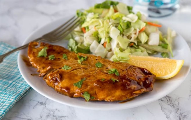 Страхотно ястие от пържена пуешка гърда с горчица и Сос Уорчестър. Вкусна пуйка може да се готви у дома празнична трапеза.