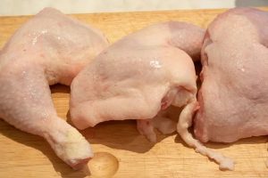 - Пилешки бутчета с моята вода, изсушете и нарежете.