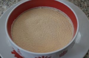 - Разтворете маята в топло мляко, добавете брашно (250 г), покрийте с филм или кърпа. Поставете тестото на топло място, така че да се утрои.