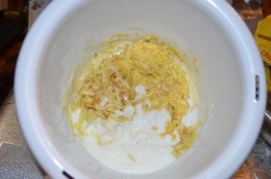 - Разтрийте ябълката, смесете с останалите компоненти.