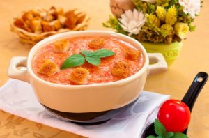 Тази вкусна испанска супа а на домате, сладък пипер и освежаващи краставици, сервирани добре в горещо времето, докато се приготвя вкъщи студено. Супата е перфектна за вегетарианска кухня. Виненият оцет може да бъде заменен с сок от лайм или лимон.