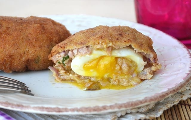 Искате да зарадвате себе си и близките си, гответе у дома невероятно свински банички, пълнени с яйца. Ако сварите пилешки яйца меко сварени, увийте ги с мляно свинско месо и запържете в двойно паниране, получавате невероятно вкусно и необичайно ястие, което разнообразява ежедневната диета. Специален аромат, добавен към прасето смлян магданоз и горчица.