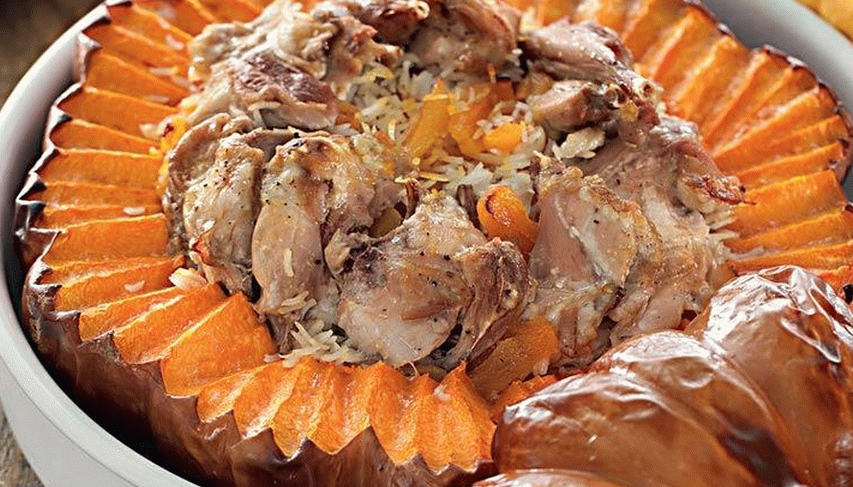 Тиквата е невероятно здравословен зеленчук, който съдържа фибри. Тя е премахва вредните вещества от тялото и предотвратява образуване на камъни в жлъчния мехур. В комбинация с нарязан на порции печено пиле и гарнитура се оказва великолепна, в същото време здравословно, удовлетворяващо и вкусно ястие. И се приготвя у дома като “три в едно”: пиле, тиква и гарнитура (елда със сушени кайсии). Да започнем! ?