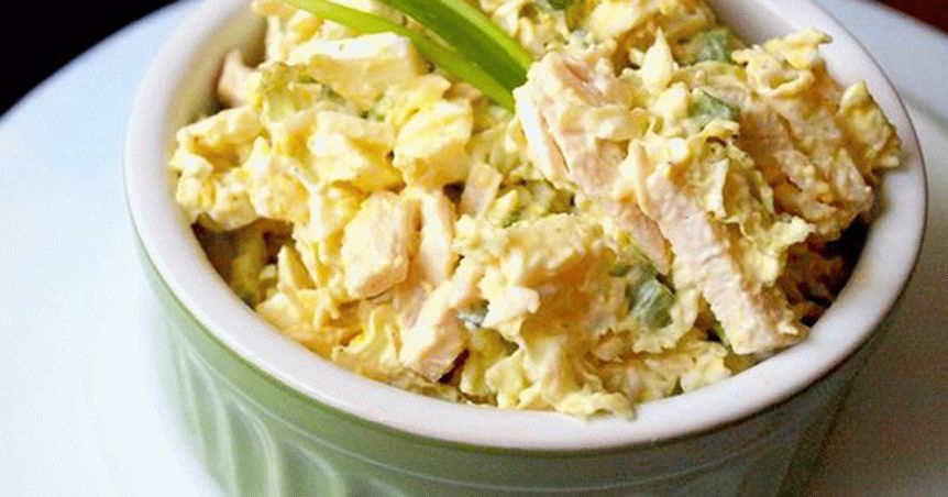 Една вкусна нискокалорична салата е добра и за пресни зеленчуци и варено постно пилешко месо. Нежна и лека салата е напълно възможна гответе като пълноценна храна за вечеря у дома.